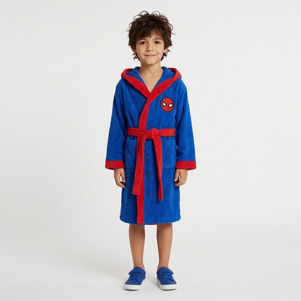 Η δράση του αγαπημένου υπερήρωα μεταφέρεται στο μπάνιο με το εντυπωσιακό παιδικό μπουρνούζι Spider-Man. Κατασκευασμένο από 100% βαμβακερό πετσετέ ύφασμα (cotton terry), το συγκεκριμένο μπουρνούζι προσφέρει την απόλυτη απορροφητικότητα και μια "soft and cozy" αίσθηση μετά το νερό. Σχεδιασμένο για τους μικρούς θαυμαστές της Marvel, συνδυάζει την ποιότητα με έναν "vibrant" σχεδιασμό που κάνει την ώρα του μπάνιου ή της πισίνας την πιο ευχάριστη στιγμή της ημέρας.