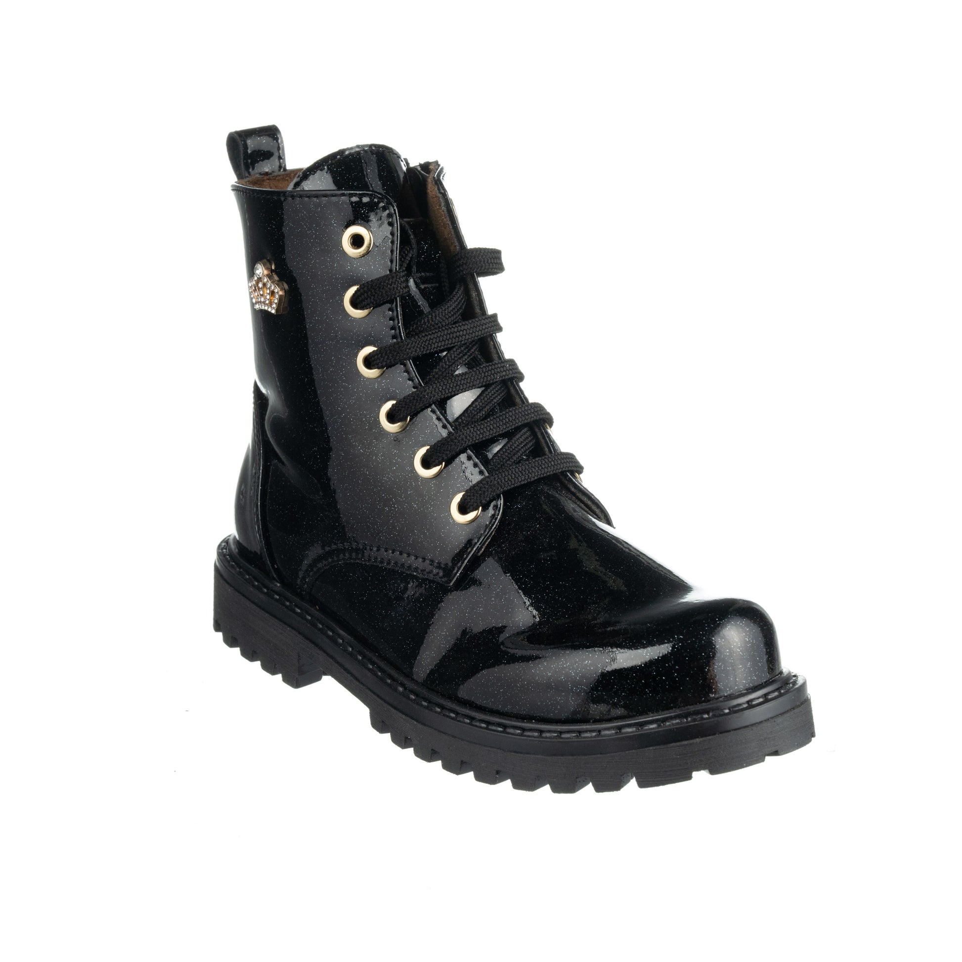 Παιδικό μαύρο μποτάκι με γυαλιστερό φινίρισμα και κομψές χρυσές λεπτομέρειες. Άνετο και ανθεκτικό, ιδανικό για καθημερινές και πιο ιδιαίτερες εμφανίσεις. Ελληνικής παραγωγής, με προσοχή στην ποιότητα και το στυλ που αξίζουν τα παιδιά.