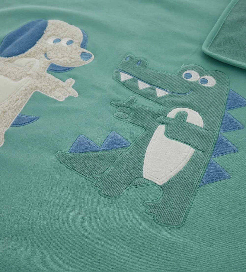 Original Marines Βρεφική Κουβερτούλα Πράσινη με Σκυλάκι και Κροκοδειλάκι FF25