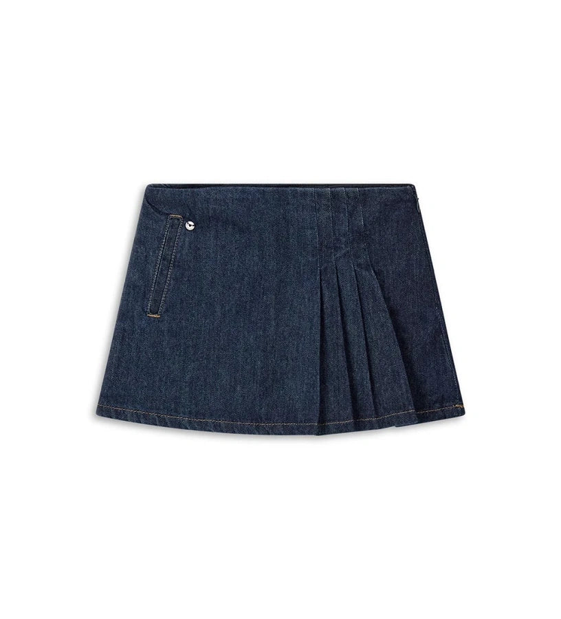 Τζιν culottes με ρυθμιζόμενη εσωτερική ζώνη και πλαϊνό κλείσιμο με φερμουάρ. Ψεύτικη μπροστινή τσέπη, λεπτομέρειες με πιέτες και διακοσμητικά γούρια λογότυπου από ασημί μέταλλο για μια μοντέρνα πινελιά.
